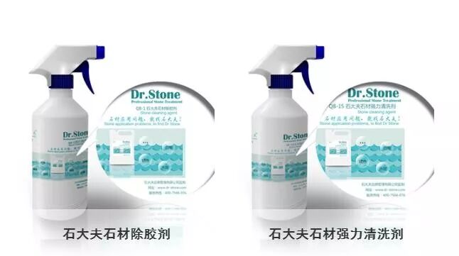 如发现石材已有浅表层被污染,仅靠打磨、抛光已无法去掉,可适当使用除蜡剂,并配合液体吸水装置来清洗即可。如干挂胶、不干胶、玻璃胶、石材修补胶、真石漆、油漆污染的清除可用专用的石大夫石材除油除胶剂、石材强力清洗剂配合使用。
